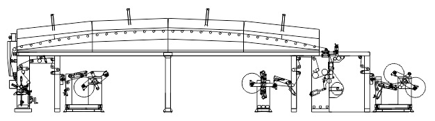 產(chǎn)品用途: 該機適用于BOPP、PET、PVC、PE、鋁箔、紙張等卷狀薄膜材料兩層多次復(fù)合,生產(chǎn)高強度,高保鮮、耐蒸煮等高品質(zhì)包裝材料。產(chǎn)品特點: 1、整機PLC可編程控制器控制,運行穩(wěn)定、可靠。2、人機界面,10.4寸液晶觸摸屏。 3、進口矢量九電機同步控制。 4、網(wǎng)紋輥帶刮刀之涂布方式(備有多種涂布量的網(wǎng)紋輥供選擇)。 5、放卷翻轉(zhuǎn)雙工位機構(gòu),EPC自動糾偏系統(tǒng),自動裁切裝置可實現(xiàn)不停機接換卷。 (復(fù)合之前另設(shè)置有單工位鋁箔專用放料架) 6、收卷翻轉(zhuǎn)雙工位機構(gòu),預(yù)驅(qū)動功能,自動裁切裝置可實現(xiàn)不停機換卷。 7、移動式刮刀,氣動背壓裝置。 8、四段獨立烘箱結(jié)構(gòu),封閉循環(huán)式烘箱及獨立加熱送風系統(tǒng),自動恒控制。 9、氣頂式烘箱及穿膜操作平臺,烘箱內(nèi)導(dǎo)輥主動同步運轉(zhuǎn)。 10、復(fù)合基材預(yù)熱裝置,復(fù)合成品水冷卻裝置。 11、氣脹式收放卷軸。 12、復(fù)合采用三輥壓合方式,壓力更均勻,復(fù)合更牢固。 穿膜圖: ![]() 技術(shù)參數(shù):