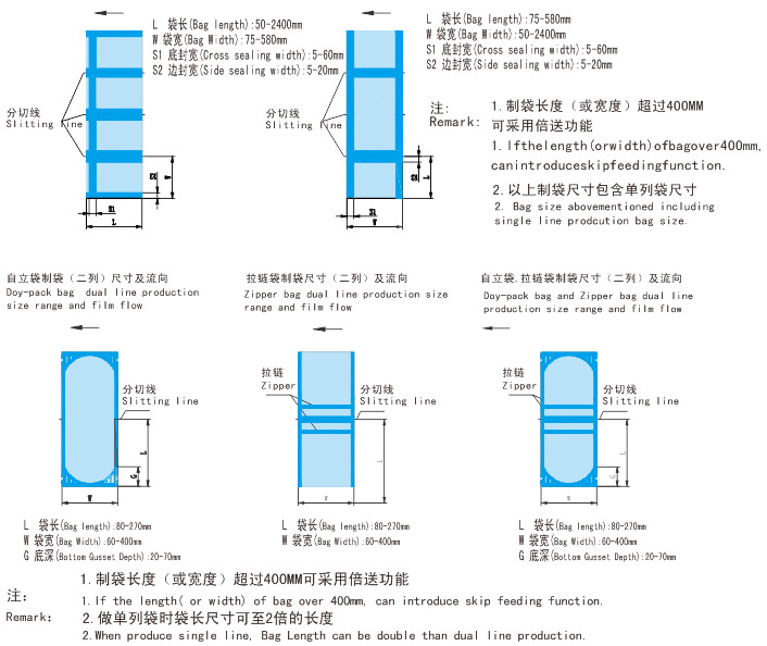 注:由于袋型、材料等原因實際運行速度會有所下降。