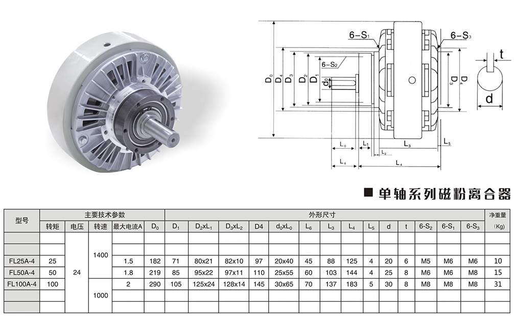 單軸系列磁粉離合器