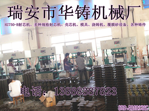 射芯機   瑞安市華鑄機械有限公司是一家專業致力于射芯機、殼芯機、鑄造模具、重力澆鑄機覆膜砂設備、各種鑄件的生產廠家、從2002年至今我公司不斷研發創新在市場的競爭中脫穎而出目前是鑄造設備企業中最強的生產廠家,我們擁有鑄造廠、覆膜砂生產廠模具生產機器制造廠等歡迎各界好友來場現場參觀考察合作